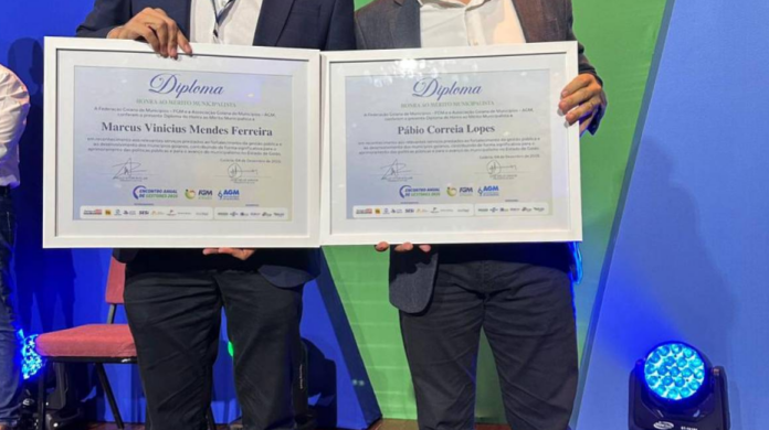 A honraria a Pábio Mossoró foi entregue pelos presidentes anfitriões das entidades municipalistas, Paulo Vitor Avelar, da FGM, e Zé Délio, da AGM, em meio a uma programação que reuniu autoridades de todo o estado e consolidou o encontro como o principal fórum municipalista de Goiás.
